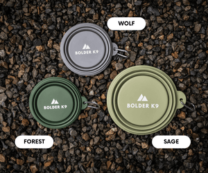 Upgrade your dog's on-the-go meal and water time with the Bolder K9 Silicone Dog Bowl, designed for durability and portability. Whether you're out and about or at home, these collapsible bowls are ideal for every adventure, providing a reliable and easy-to-clean solution for food or water. Available in two convenient sizes—400ml and 1000ml—and three stylish colors—Sage, Forest, and Wolf—this bowl is perfect for dogs of all sizes.